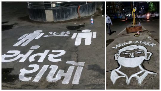 ભુજના યુવા પ્રાંત અધિકારી મનીષ ગુરવાણીના આ નવતર અભિગમથી તેઓ જનતાને કોરો અંગે સાવચેતીનો સંદેશો પહોંચાડી રહયા છે. કલા સાથે મેસેજને અમલમાં મૂકી તેમણે કોરોના સંક્રમણને અટકાવવા કેવા સાવચેતીના પગલાં લેવાય તે ભુજના પ્રસિધ્ધ વિસ્તારોમાં કલાકાર અસોસોએશનની મદદથી ચિત્ર દોરાવી બતાવ્યું છે. જેમકે ‘‘બે વ્યકિત વચ્ચે પાંચ ફુટનું અંતર રાખો’’ ‘‘માસ્ક પહેરો, ‘‘ઘરે રહો સલામત રહો’’ કચ્છ આર્ટીસ્ટ એસોશિએશન સ્વૈચ્છિક રીતે ભુજના ધમધમતા રોડ જેમકે જયુબીલી સર્કલ, ઓલ્ફ્રેડ હાઈસ્કૂલ, વાણિયાવાડ શાકમાર્કેટ રોડ અને હમીરસર તળાવ, જિલ્લા કલેકટર કચેરીના બહારના રોડ પર આ લખેલા ચિત્રો સમાજના લોકોની જાગૃતિ માટે દોર્યા છે. શ્રી ગુરૂવાણીના માર્ગદર્શન હેઠળ કલાકારોએ આ રીતે કોરોના વાયરસ સંક્રમણને રોકવા પોતાનું યોગદાન આપી પોતાનું સમાજ પ્રત્યેનું પ્રત્યેનું ઋણ અદા કર્યુ છે. ઘરે રહો સુરક્ષિત રહો અને સામાજિક અંતર જાળવી સુરક્ષિત રહો એમ શ્રી ગુરૂવાણી અને કલાકારો પોતાનો સંદેશો વ્યકિતઓ સુધી કલાથી પહોંચાડી રહયા છે.