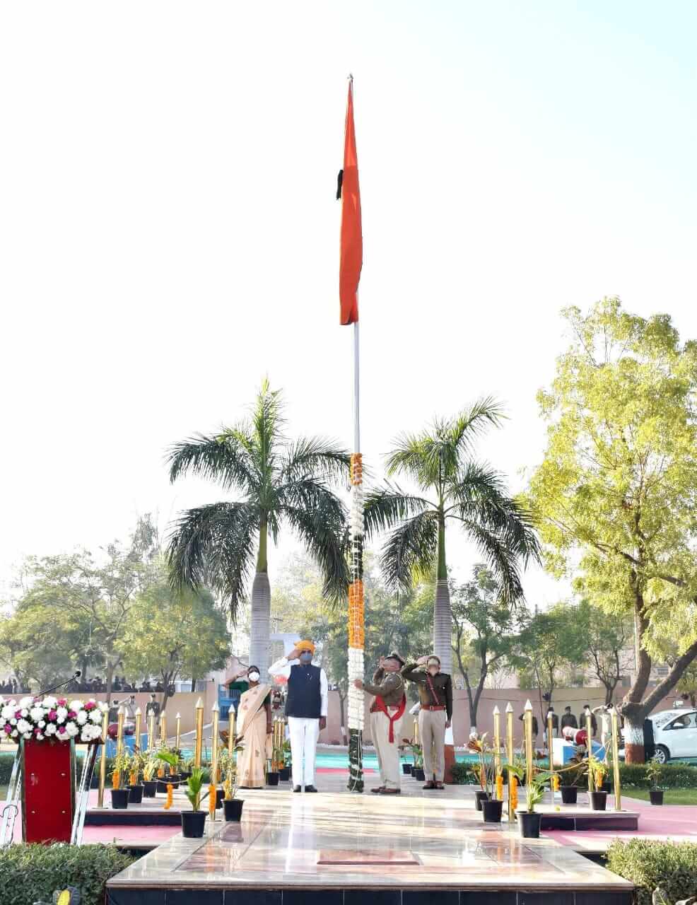 આ તકે પોલીસ બેન્ડની સુરાવલીની દેશભકિતથી રંગાયેલ કચ્છના દેશપ્રેમી પ્રજાજનો સાથે સાંસદ વિનોદભાઇ ચાવડા, ધારાસભ્ય માલતીબેન મહેશ્વરી, વિરેન્દ્રસિંહ જાડેજા, અગ્રણી કેશુભાઇ પટેલ, જિલ્લા કલેકટર પ્રવિણા ડી.કે., ડીડીઓ ભવ્ય વર્મા, બોર્ડર રેંજ આઇજીપી જે.આર.મોથલીયા, પશ્ચિમ કચ્છ એસ.પી. સૌરભસિંઘ, પૂર્વ કચ્છ એસ.પી. મયુર પાટીલ, અધિક નિવાસી કલકેટર કુલદીપસિંહ ઝાલા, ડીઆરડીએ નિયામક મેહુલ જોષી, ભુજ પ્રાંત મનીષ ગુરૂવાની, નાયબ પોલીસ અધિક્ષક પંચાલ, મુખ્ય જિલ્લા આરોગ્ય અધિકારી ડો.પ્રેમકુમાર કન્નર, સીવીલ સર્જન બુચ, નારાયણ જોશી તેમજ જિલ્લા વહીવટી તંત્રના પદાધિકારીશ્રીઓ, અધિકારીઓ, મીડીયા કર્મીઓ આ ઉપસ્થિત રહયા હતા.